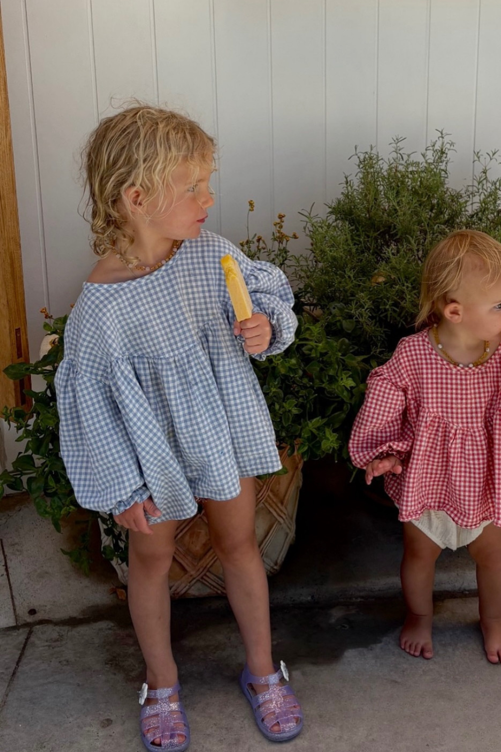 Designed for your daughter’s sweetest moments, this gingham top is full of sweet little details, from the frilly puff sleeves, dipped front yoke, and tie-up back.