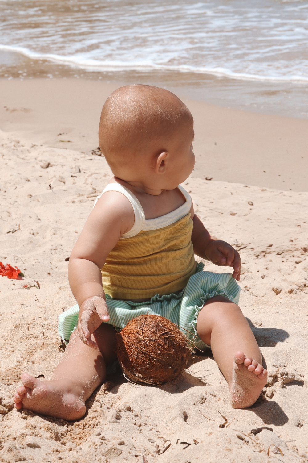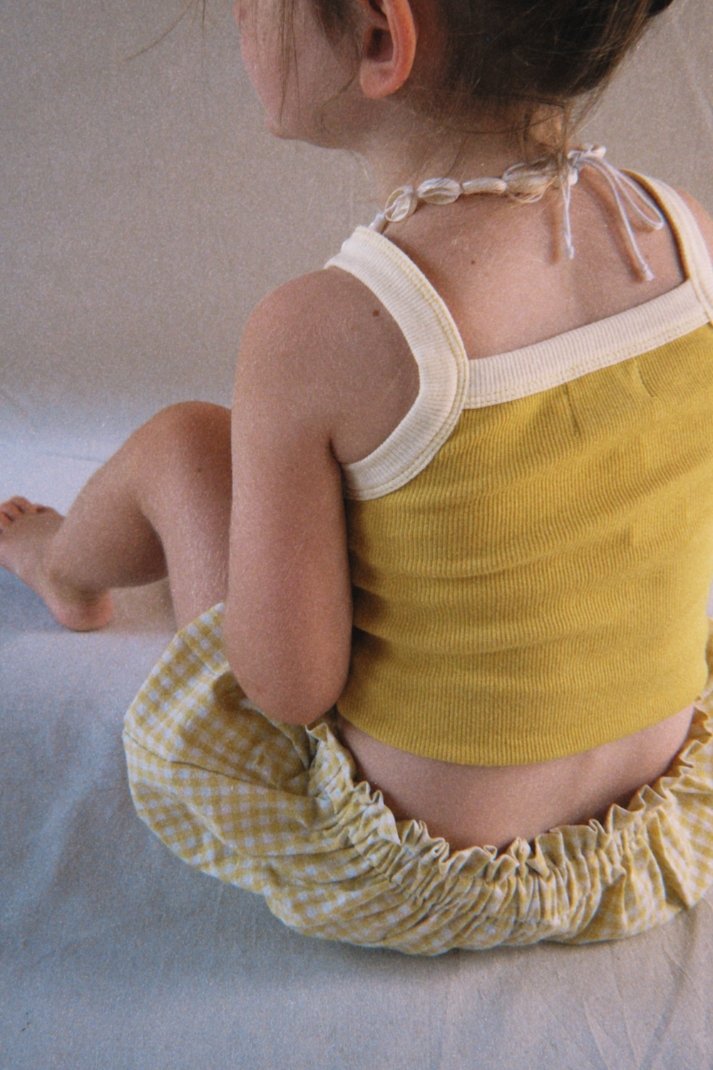 Crafted from premium 100% cotton rib for soft, stretchy comfort that moves with your little one. Designed in the perfect midi length (not too long and not too cropped!) with contrast cream binding, it’s the perfect everyday staple for summer.