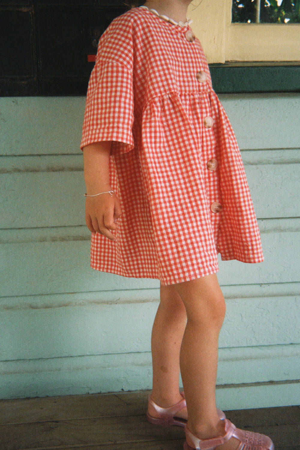Meet the dress of summer! The Sunny Smock Dress is your easy go-to — lightweight, comfy and made for movement. With its floaty smock silhouette and button-down front, it’s a mini dress made for carefree play and long summer days in our best-selling red gingham. (also makes for the CUTEST christmas dress, just saying!)